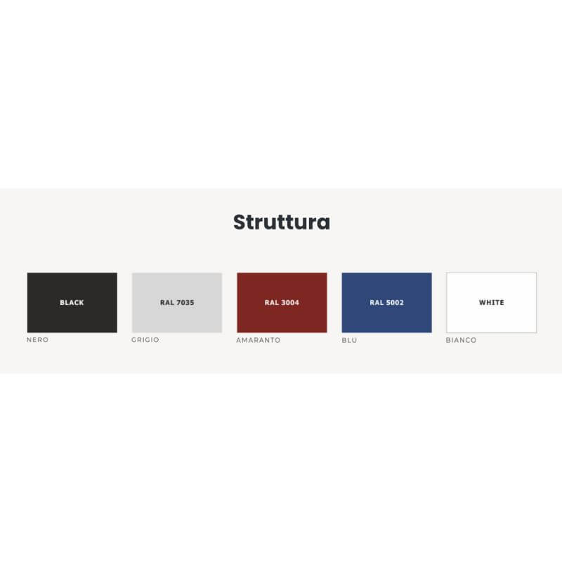 grigio alluminio. Sedile e schienale in polipropilene colorato.